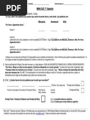 Mini Cog Spanish Pdf Reloj Sicologia